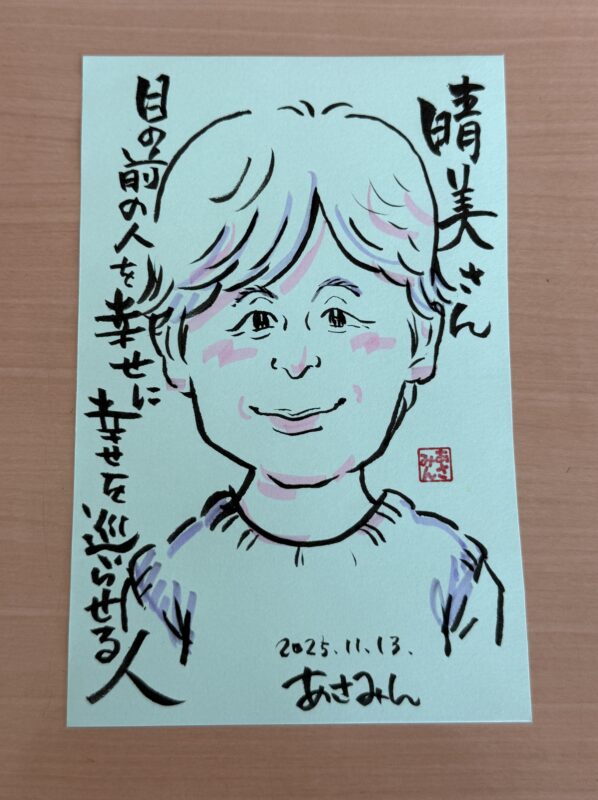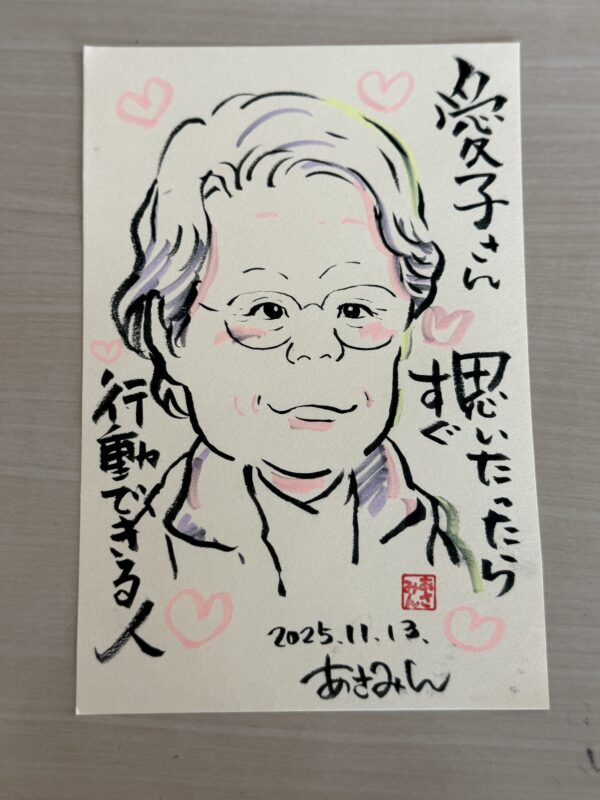 みんなの笑顔と、手にした似顔絵と、あさみんの幸せそうな姿。